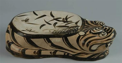 白釉褐彩虎形瓷枕