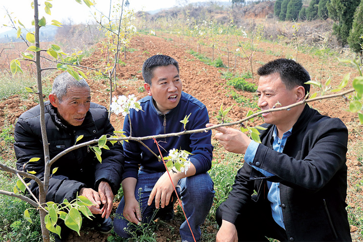 駐村第一書(shū)記劉召喚(中)查看林果產(chǎn)業(yè)