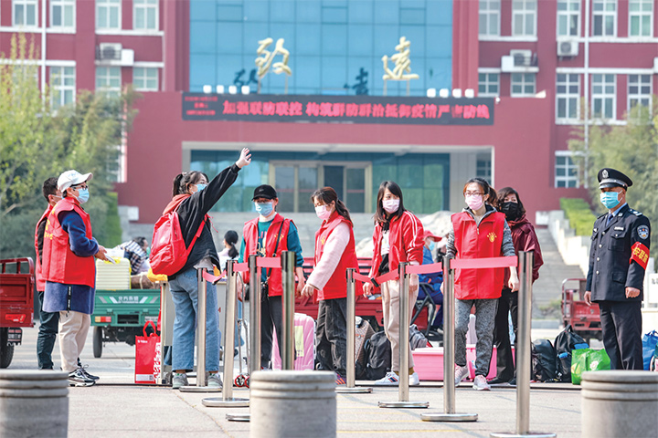 當(dāng)天一大早,各高中高三學(xué)生按規(guī)定時(shí)間、規(guī)定通道,有序錯(cuò)峰入校。家長將學(xué)生提前送到校門前,行李堆了一地,前來協(xié)助的特警將行李送入校園。隨后,學(xué)校黨員、志愿者,將學(xué)生的行李用三輪車一一拉入宿舍。