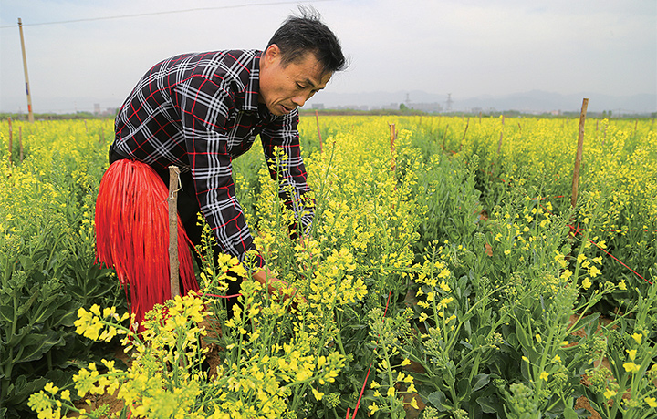由于春季風(fēng)雨天氣較多,近日,農(nóng)民對制種蔬菜加強(qiáng)管理,防止倒伏,提高種子質(zhì)量。記者 李浩 攝