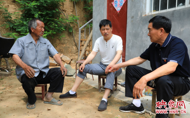卞華鵬(中)、鄭興旺(右)向趙有富了解他的生活近況