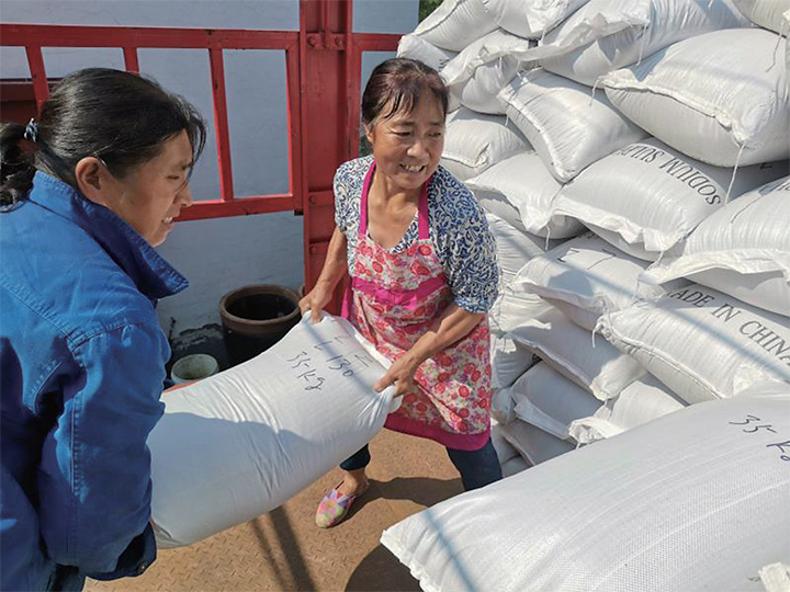 村民在往車上裝蔬菜種子