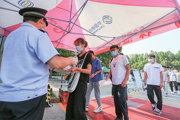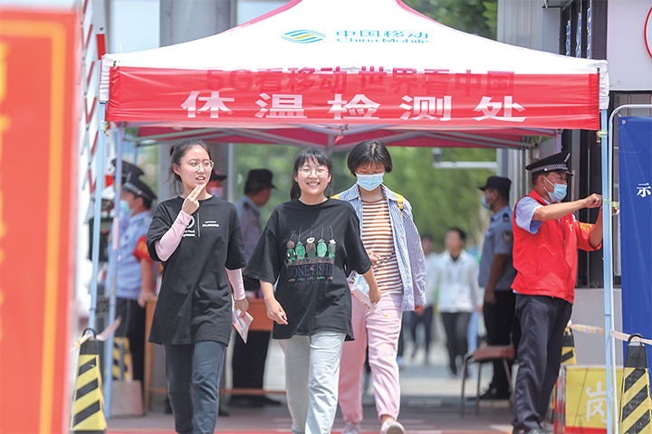 考生測體溫后進(jìn)入考場