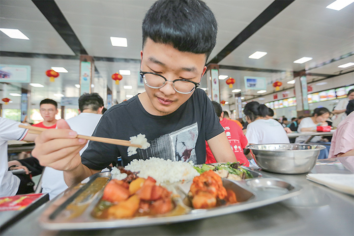 在等待的人群中,拎著飯盒的段女士特別顯眼。交談中,她告訴記者,兒子考試前一天晚上打電話說想吃家里的飯菜,考試當(dāng)天早上9點(diǎn)半她就開始為兒子的午飯忙碌?!拔易隽艘粋€(gè)醋溜土豆絲、一個(gè)紅燒小排,還特意煮了綠豆粥,這些都是兒子平時(shí)愛吃的?!倍闻康男ρ壑袧M是藏不住的關(guān)愛,“高三學(xué)生學(xué)習(xí)真的很辛苦,我兒子每次回家一吃完飯就把自己關(guān)在書房看書做題?!倍闻空f,對(duì)于高考,她不想給孩子太多壓力,“學(xué)習(xí)本就辛苦,作為家長還是以平常心對(duì)待為好,只要孩子的成績無愧于他的付出就行?!?記者 王興輝 文/圖)