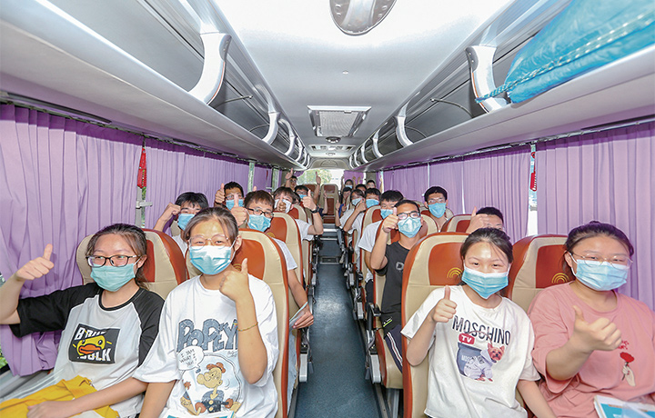 首場考試后,考生在大巴車上給自己點(diǎn)贊加油