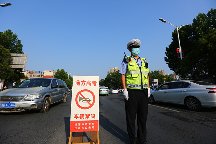 交警在考點(diǎn)路口值守