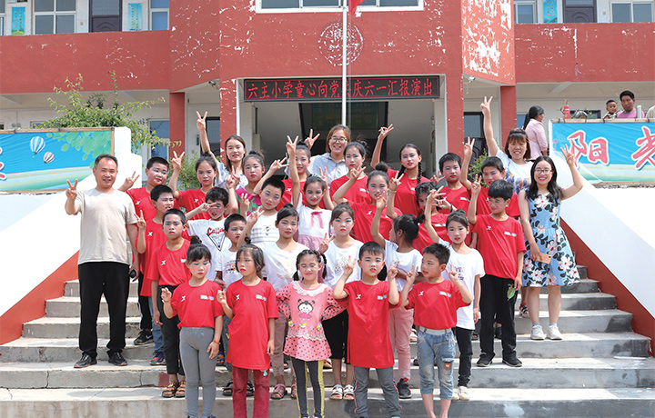孔建設(shè)(左一)和“六一”匯報演出的師生合影留念