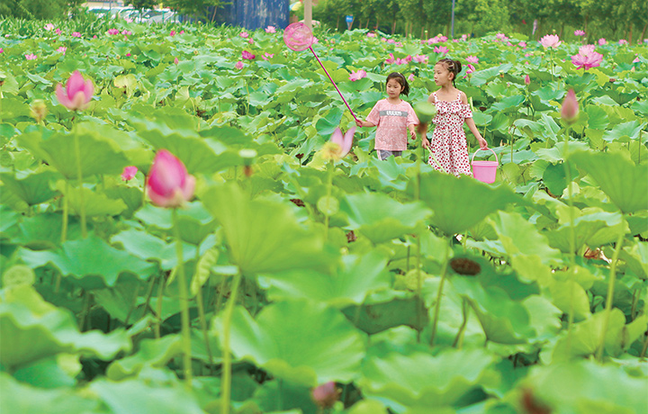 日前,在五龍口鎮(zhèn)沁河谷樂園內(nèi),兩個(gè)小女孩穿梭在荷花叢中。