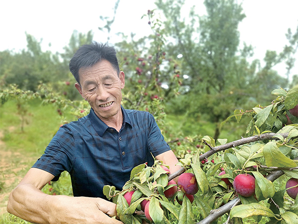 范哲紅查看村里貧困戶的李子成熟情況