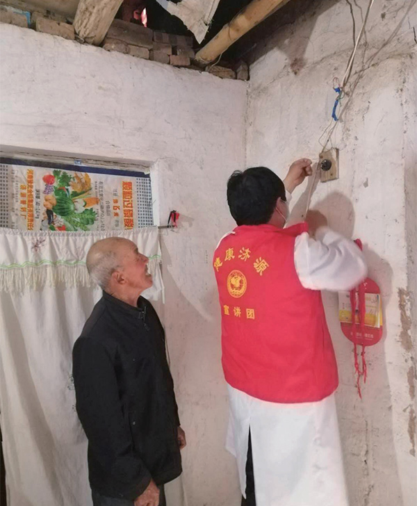 健康扶貧團(tuán)隊(duì)隊(duì)員幫老人安燈繩