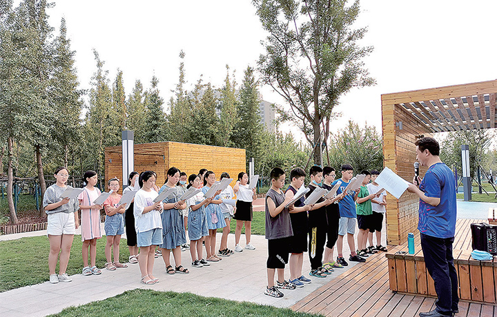 “我們的活動已經(jīng)舉辦兩期了?!睂W生家長李占峰介紹,一放暑假,他們就開始籌備這項活動。為保證每次活動的順利舉行,他們專門建立了微信群,以供大家交流討論;選擇了18首以愛國主義、正能量為主題的詩歌并編印成冊,提前發(fā)給學生、家長。