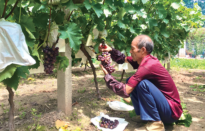 眼下正是葡萄成熟的時(shí)節(jié),果農(nóng)趁著晴好天氣抓緊采摘葡萄,供應(yīng)市場(chǎng)。記者 劉培琳 攝
