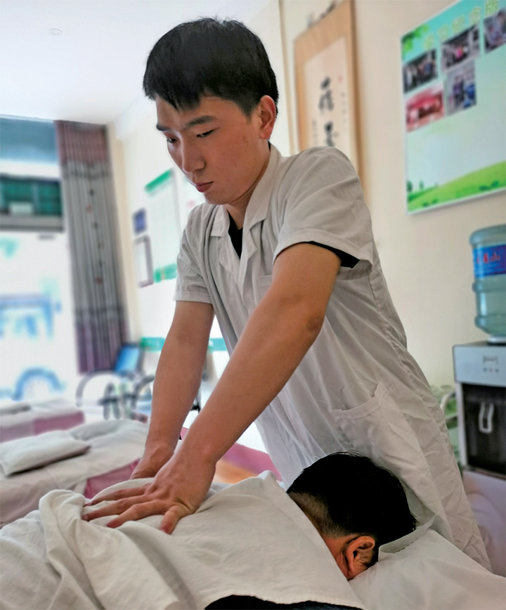 趙冬冬正在給客人按摩