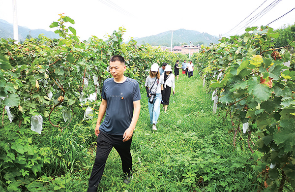 石軍朋帶著記者在花語季公司承包的田地里轉了一圈,晶瑩飽滿的葡萄、粉嫩多汁的桃子,多樣的品種、各色的蔬果,處處一幅豐收的喜悅畫面。
