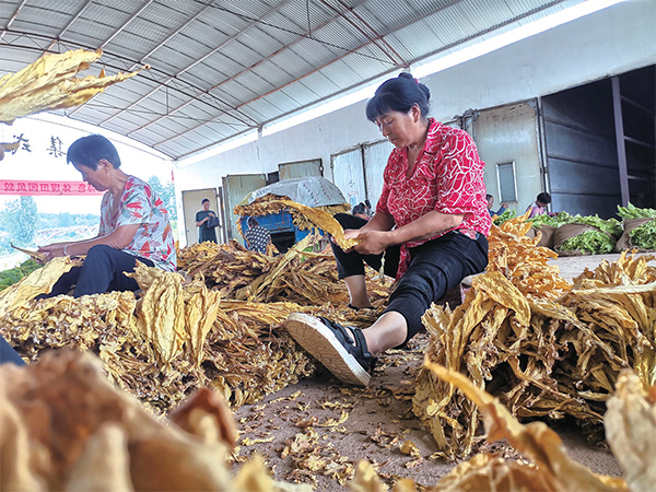 與此同時,不遠處的北桐村,30多戶煙農也在馬不停蹄地采收煙草?!敖陙硪揽糠N植煙葉,群眾的收益不錯,都過上了好日子。”北桐村黨支部書記王世強望著漫山遍野翠綠泛黃、葉片肥厚的煙葉,喜上眉梢。