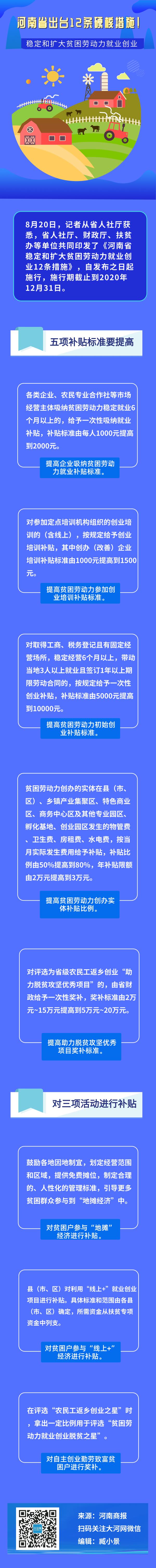 圖解丨穩(wěn)定和擴(kuò)大貧困勞動(dòng)力就業(yè)創(chuàng)業(yè),河南省出臺(tái)12條硬核措施!