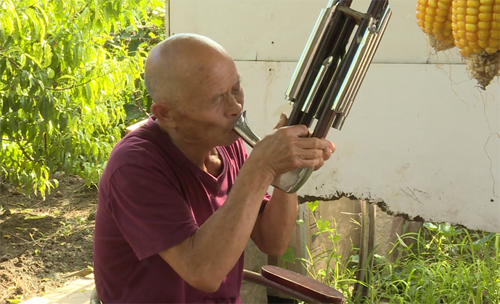 張景順在果園吹笙