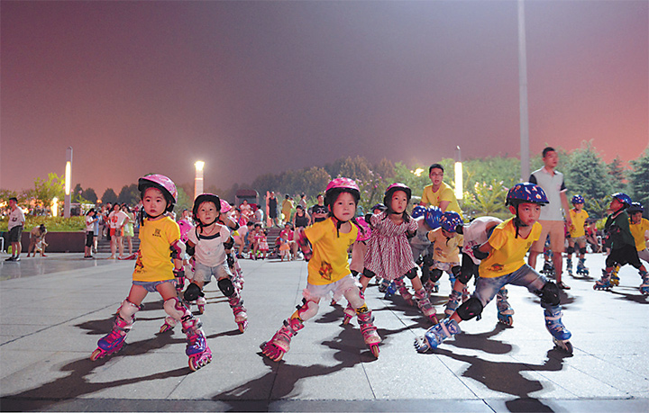 夜幕下學(xué)輪滑的孩子們(資料圖)
