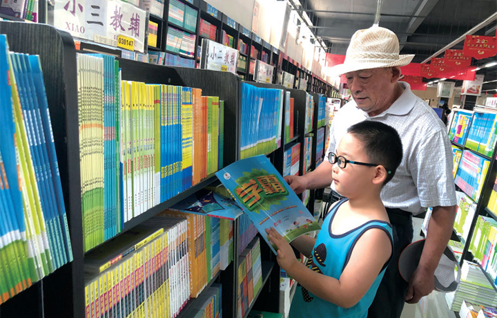 在另一邊的少兒讀物書架旁,一位家長正在書店工作人員的協(xié)助下,尋找自己需要的書籍。“老師在微信群里發(fā)了一些課外讀物,說是對(duì)孩子學(xué)習(xí)有幫助,所以我們就來看一下?!笔忻癯膳扛嬖V記者,最近一周,她每天都要陪孩子來書店逛逛?!拔覀冏蛱熨I了兩本字帖和3本教輔書籍,花了一百多塊錢,今天再買些課外書,這學(xué)期基本就夠了。”