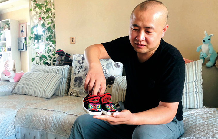 劉金杰向記者展示老人做的手工繡鞋