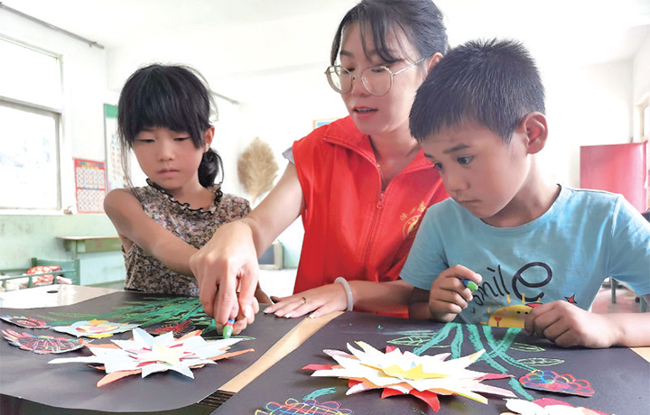 9月9日,濟源四中教師志愿服務(wù)隊前往王屋鎮(zhèn)和平教學(xué)點,開展送“特色課”下鄉(xiāng)活動,與山區(qū)的孩子們共迎教師節(jié)。宋明潔 張寧 攝