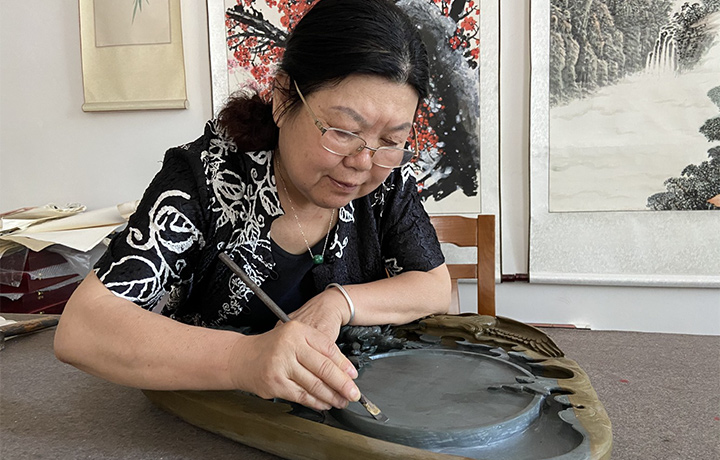 在這些年的制硯過程中,為了更好地傳承和弘揚天壇硯文化,她在制作時,不僅加入了濟(jì)源元素,如天壇名勝、愚公移山、小浪底風(fēng)光等,還多次去外地參展,宣傳濟(jì)源的天壇硯。