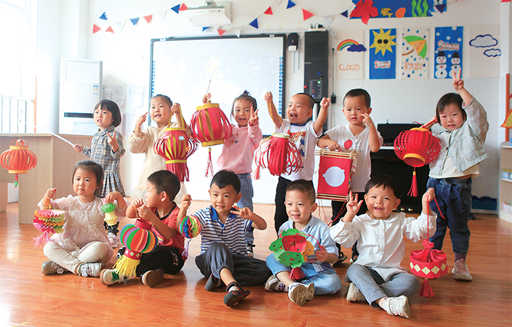 9月28日,在沁園中心幼兒園內(nèi),孩子們通過展示花燈、懸掛花燈等活動,喜迎國慶節(jié)。記者 劉培琳 攝
