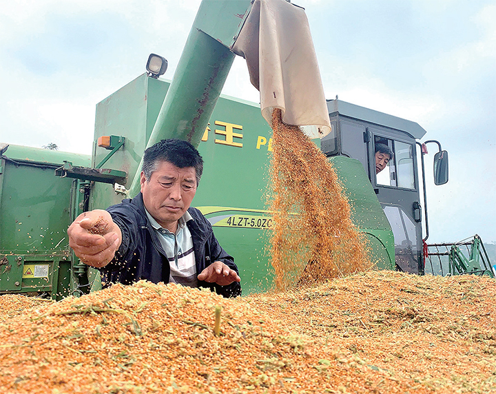 9月29日,邵原鎮(zhèn)張凹村的農(nóng)戶正在加緊搶收垂穗成熟的富硒紅谷。
