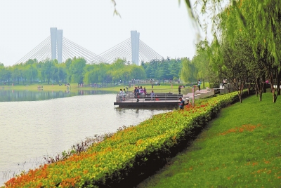 鄭州市北龍湖濕地公園水清岸綠、景色宜人。資料圖片