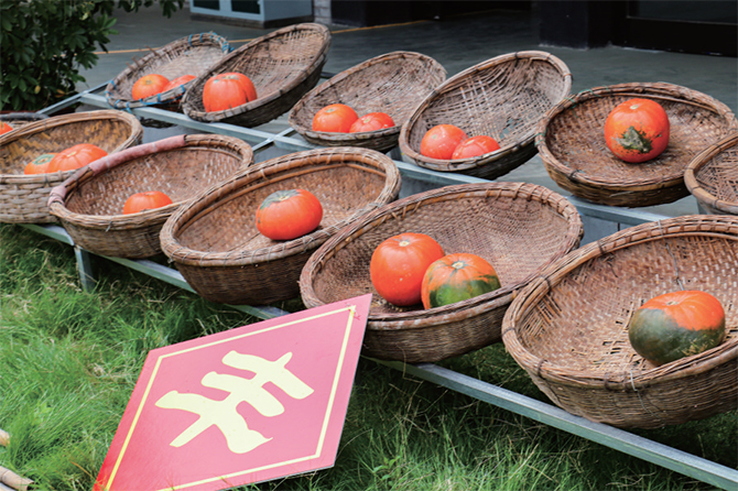 會場周圍,花石村村民還把自己家里收獲的玉米、辣椒、南瓜、綠豆等農(nóng)作物裝在竹筐里擺放整齊,吸引游客參觀、拍照,構(gòu)成一幅幸福美好的豐收畫卷。