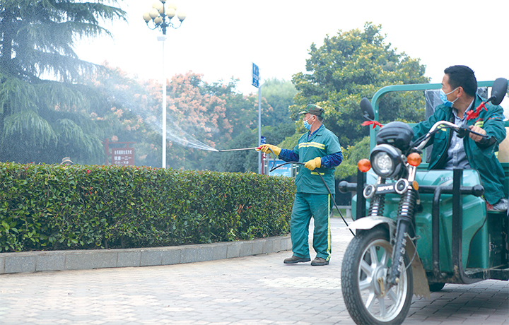 日前,園林部門組織相關人員對公園內的草坪、綠化帶進行噴藥,有效預防蟲害,促進苗木正常生長,增強綠化效果。記者 劉培琳 攝