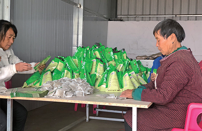 10月18日,在下冶鎮(zhèn)大嶺村農(nóng)民專(zhuān)業(yè)合作社,工人忙著將加工好的艾草足浴包分揀、裝袋。