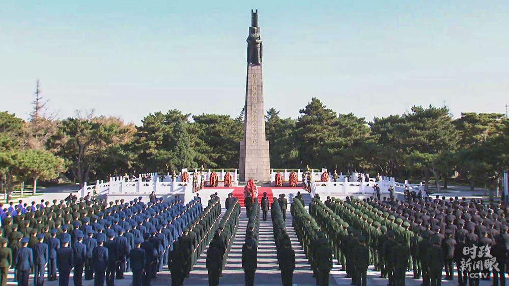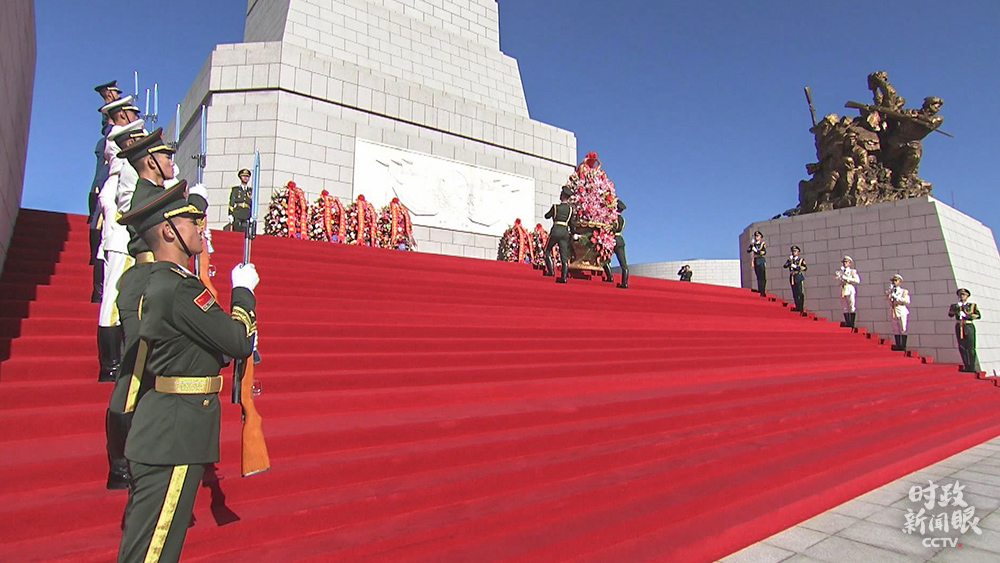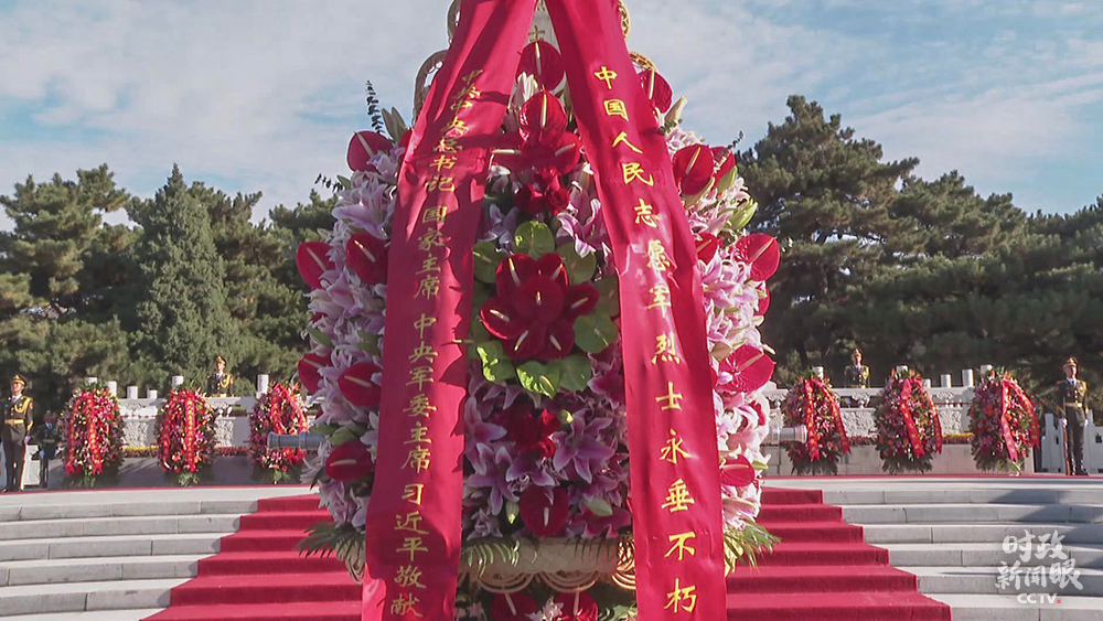 △遼寧沈陽(yáng)抗美援朝烈士陵園,以習(xí)近平名義敬獻(xiàn)的花籃擺放在烈士紀(jì)念碑正前方。(總臺(tái)央視記者雍凱鈞提供)