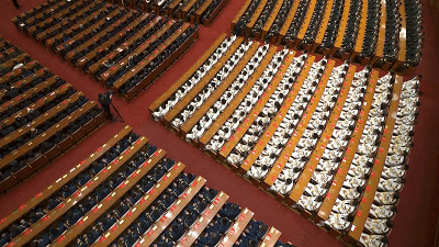 △紀(jì)念大會(huì)開(kāi)始前,大禮堂場(chǎng)外與場(chǎng)內(nèi)(總臺(tái)央視記者彭漢明、張宇拍攝)