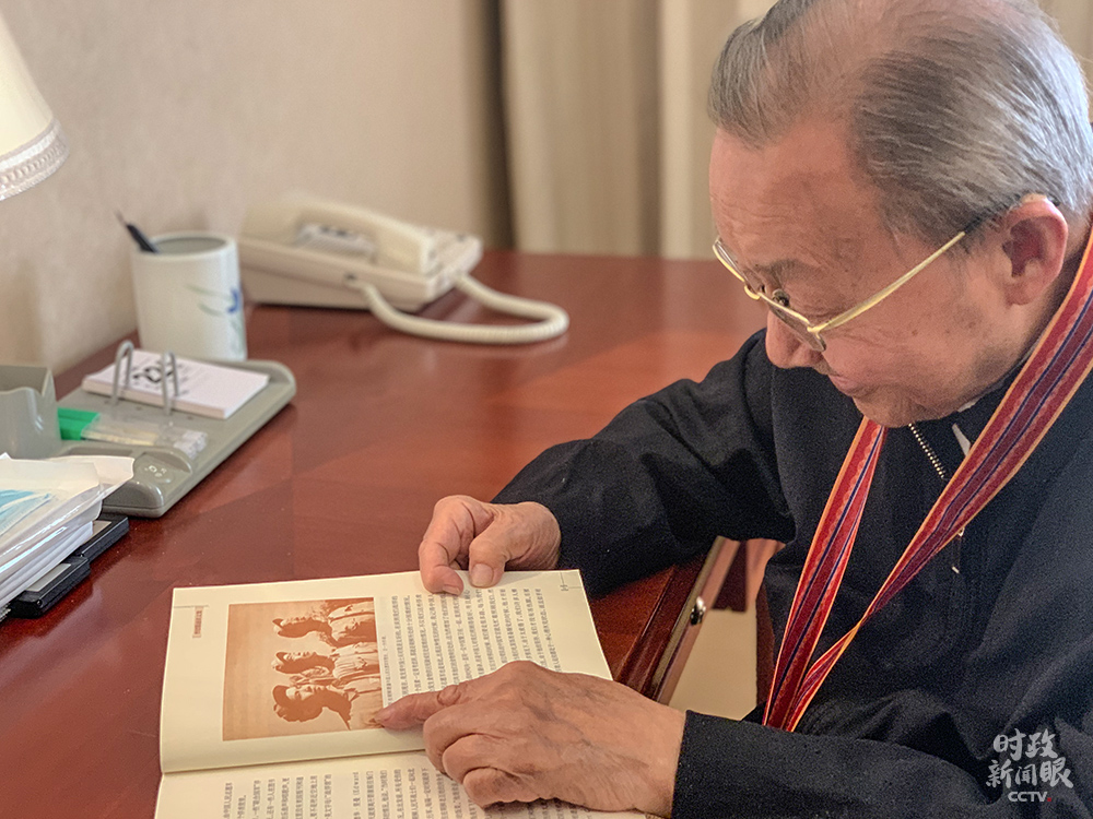 △當(dāng)天出席大會(huì)的曾建徽,曾在抗美援朝期間赴朝鮮采訪。這是他正在翻閱當(dāng)年的通訊文稿。(總臺(tái)央視記者盧心雨拍攝)