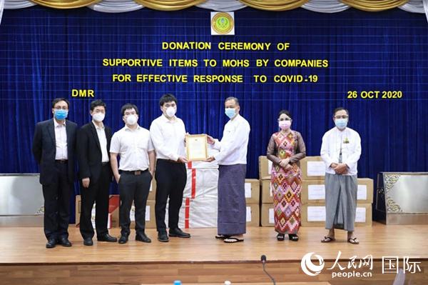 人民網(wǎng)仰光10月26日電 為幫助緬甸抗擊新冠肺炎疫情第二波沖擊,10月26日海康威視、久盛(緬甸)針織和陽光電源等企業(yè)分別向緬方捐贈防疫設(shè)備和物資,皇冠集團(tuán)時代城還向仰光省政府捐建了300個床位的診療中心。中國駐緬甸使館參贊譚書富、緬甸中國企業(yè)商會會長劉穎、緬甸衛(wèi)生與體育部醫(yī)學(xué)研究司司長佐丹吞等出席移交儀式。