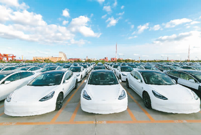中國(guó)首個(gè)外商獨(dú)資整車制造項(xiàng)目——特斯拉上海超級(jí)工廠近期啟動(dòng)整車出口業(yè)務(wù),中國(guó)制造Model 3首次出口歐洲,銷往德國(guó)、法國(guó)、意大利、西班牙、葡萄牙、瑞士等國(guó)家。圖為在上海市外高橋港區(qū)拍攝的準(zhǔn)備出口歐洲的特斯拉Model 3。新華社記者 王翔 攝