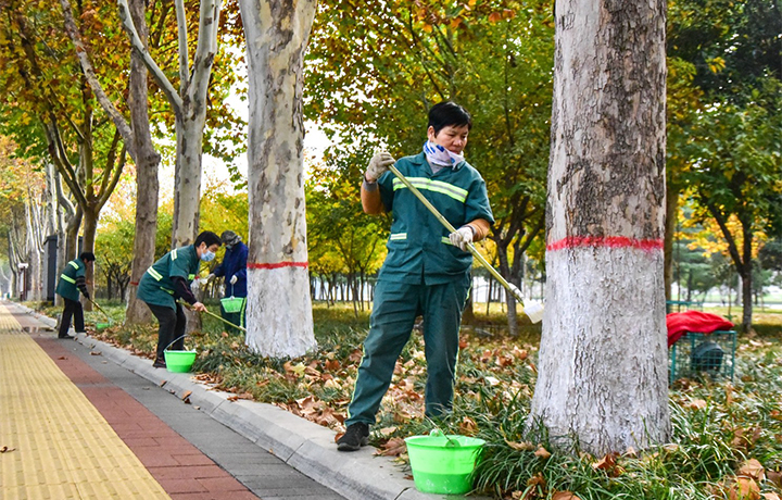 11月4日,濟源城投園林綠化有限公司對全區(qū)各游園、廣場以及主次干道20余萬株樹木進(jìn)行“涂白”,為樹木穿上一層“防護衣”,增強樹木的抗凍、抗病能力,保證樹木安全越冬。王峰 劉靜宜 攝