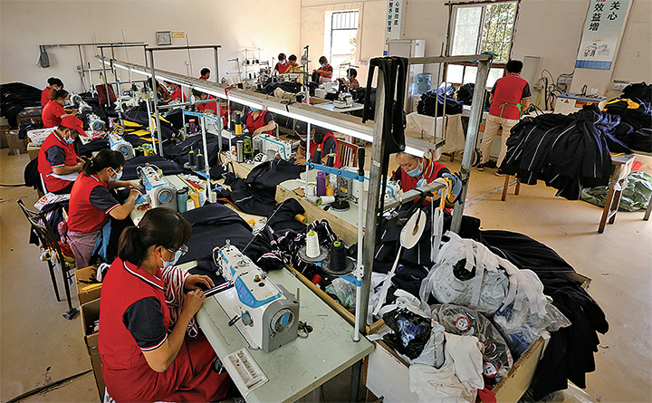 工人在合盛制衣廠進行服裝加工。