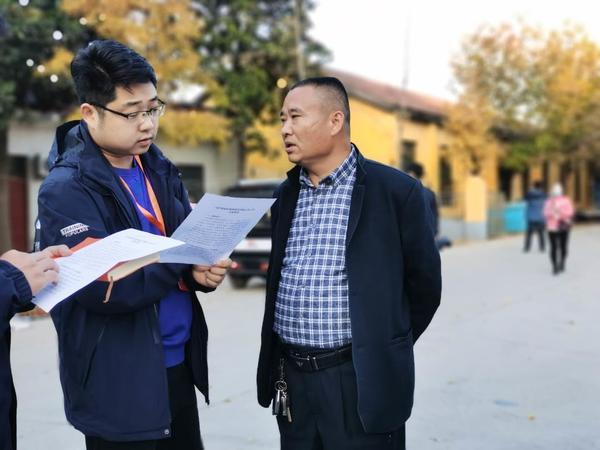 鄢陵縣馬欄鎮(zhèn)李孟社區(qū)黨支部書記張會民(右)接受記者采訪