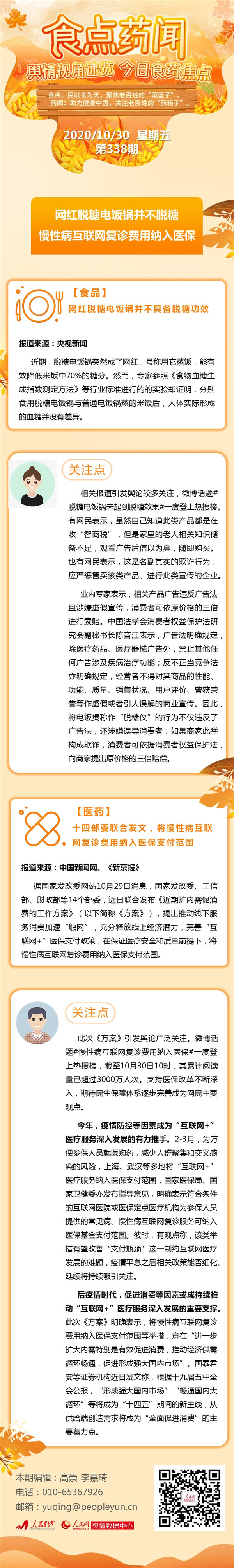 食點(diǎn)藥聞:網(wǎng)紅脫糖電飯鍋并不脫糖 慢性病互聯(lián)網(wǎng)復(fù)診費(fèi)用納入醫(yī)保