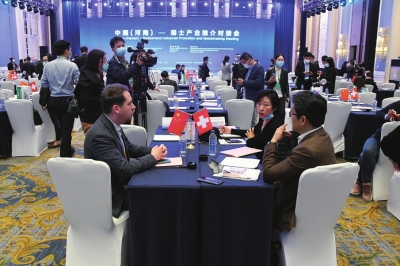 11月5日,河南省人民政府、瑞士駐華大使館在上海舉辦了中國(河南)—瑞士產(chǎn)業(yè)推介對接會,通過展覽展示、B2B洽談、領導會見、主題推介會等活動加強河南與瑞士的經(jīng)貿(mào)交流。