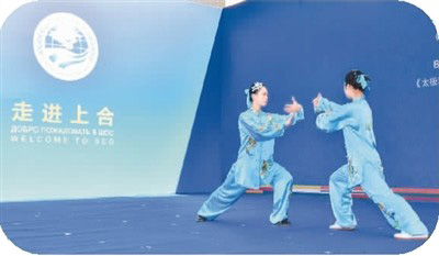 10月18日,上海合作組織秘書處在北京舉行2020-2021年上合組織文化體育系列活動新聞發(fā)布會。圖為北京體育大學(xué)的學(xué)生在表演太極。新華社記者 陳益宸 攝