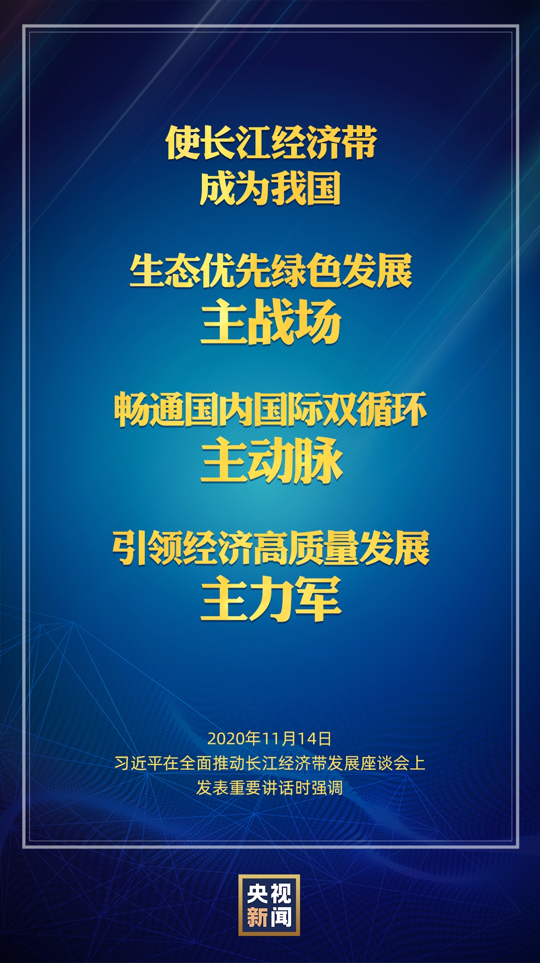 習近平指出,長江經(jīng)濟帶覆蓋沿江11省市,橫跨我國東中西三大板塊,人口規(guī)模和經(jīng)濟總量占據(jù)全國“半壁江山”,生態(tài)地位突出,發(fā)展?jié)摿薮?,?yīng)該在踐行新發(fā)展理念、構(gòu)建新發(fā)展格局、推動高質(zhì)量發(fā)展中發(fā)揮重要作用。