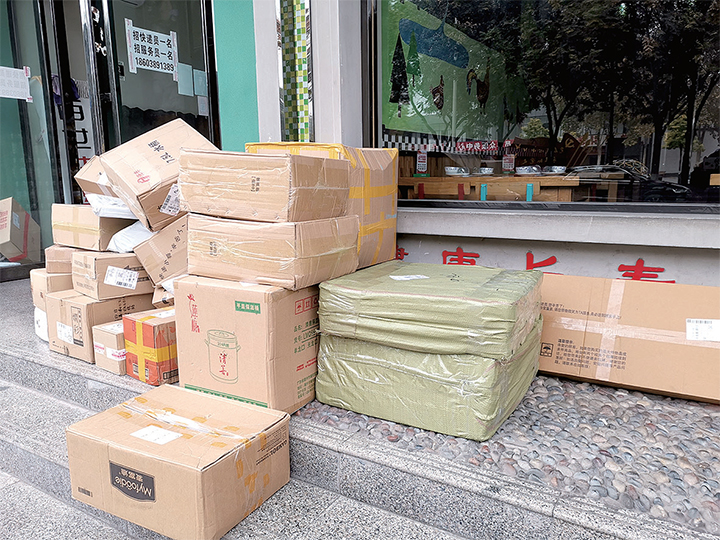 “小區(qū)里的超市可以存放快遞,一般我們在取快遞時,會直接拆開包裝,只將自己購買的東西拿回家。”市民靳小鵬告訴記者,他一般會將拆下來的快遞包裝隨手放在超市旁的垃圾桶內(nèi),不會將其帶回家,如果遇上保潔人員,會直接將快遞包裝遞給他們。