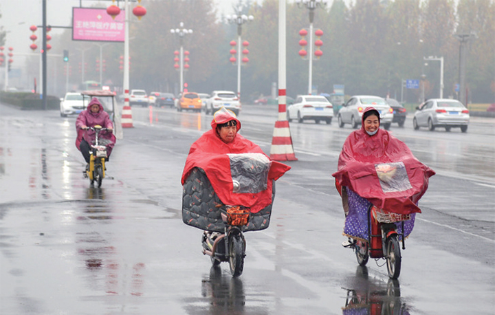 市民穿雨衣出行 李浩 攝