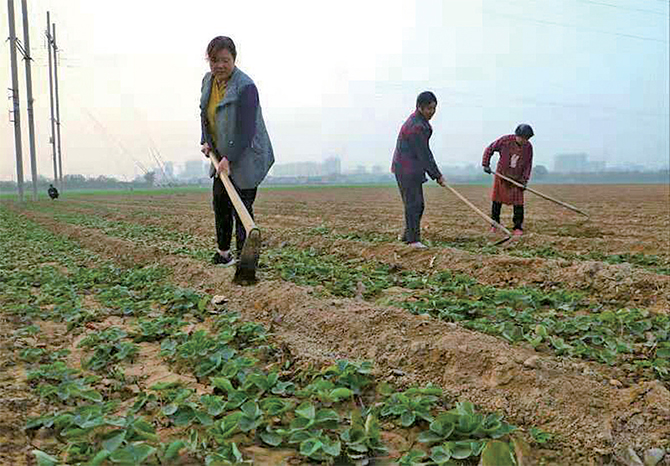 11月22日,在軹城鎮(zhèn)東軹城村,農(nóng)民在草莓地里鋤草。