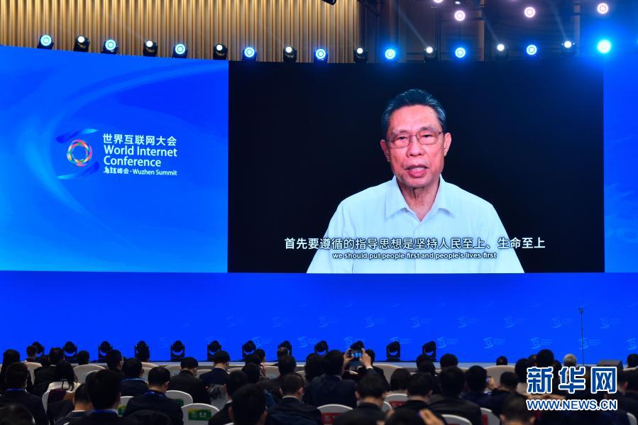 中國工程院院士鐘南山在世界互聯(lián)網(wǎng)大會(huì)·互聯(lián)網(wǎng)發(fā)展論壇“數(shù)字經(jīng)濟(jì)與科技抗疫”主論壇上以視頻形式發(fā)表演講(11月23日攝)。新華社記者 黃宗治 攝