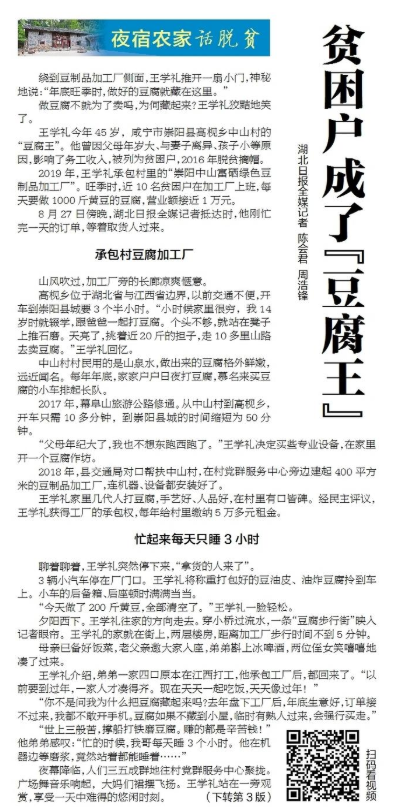 截至10月底,該專欄已推出報道近20期。記者陳會君寫了一篇《貧困戶成了“豆腐王”》。她在來稿中對這組報道的短視頻全媒體表達方式進行了介紹。