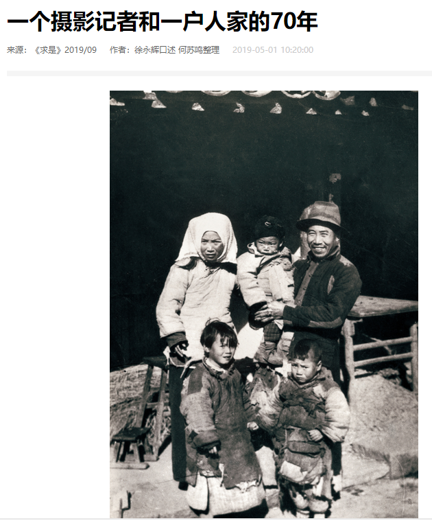 2019年9期《求是》雜刊發(fā)了已經90高齡的徐永輝口述《一個攝影記者和一戶人家的70年》。